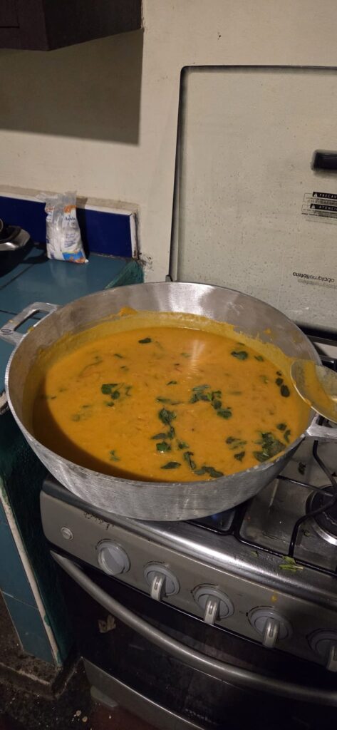 This is a favorite for Sunday family gatherings and it takes a lot of preparation. Brisket, yuca, and green plantains are layered together and slow-cooked for hours inside a large pot lined with banana leaves. The leaves steam the ingredients, making the meat incredibly tender. We always top it with a fresh, vinegary cabbage salad to balance the rich flavors.