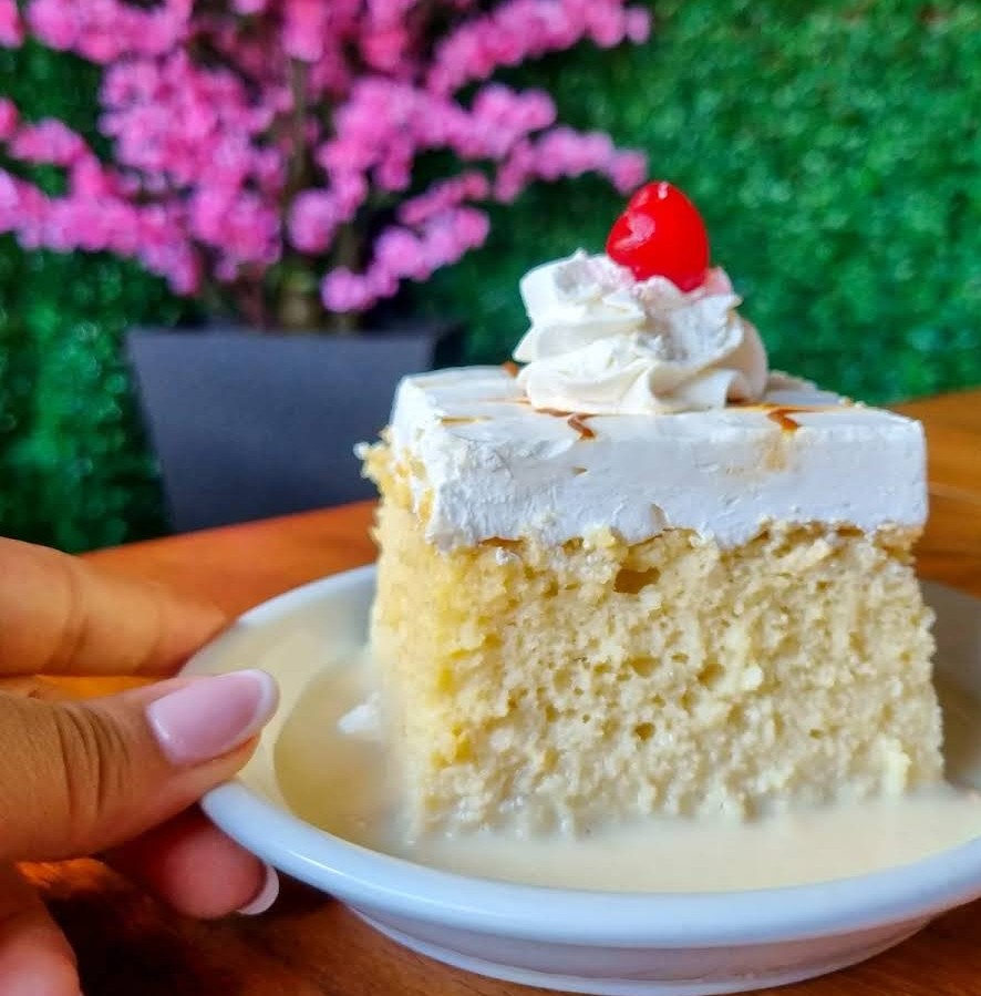 For something sweet, this is our most famous dessert. It’s a sponge cake soaked in three different kinds of milk: evaporated, condensed, and heavy cream. It’s very moist and rich but still feels light. We usually top it with a bit of meringue. You’ll find this at almost any celebration or local bakery.